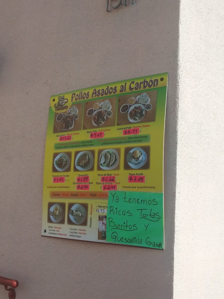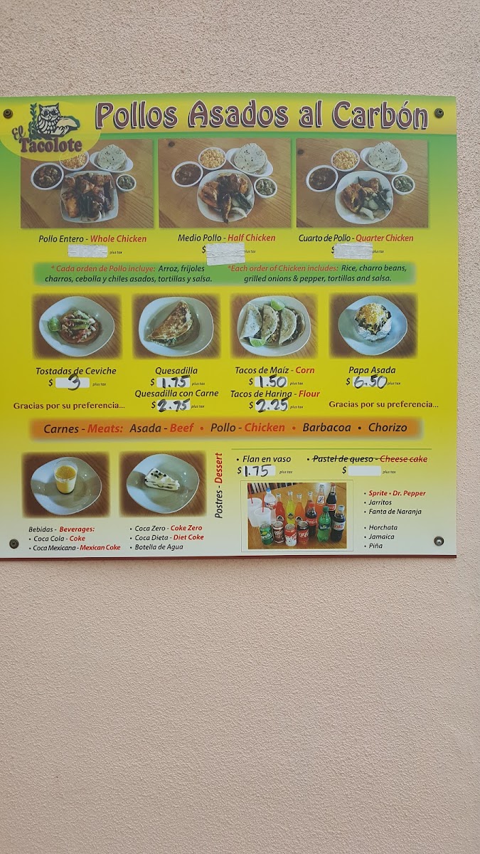 Introducing the Menu of El Tacolote Pollos Asados Al Carbon